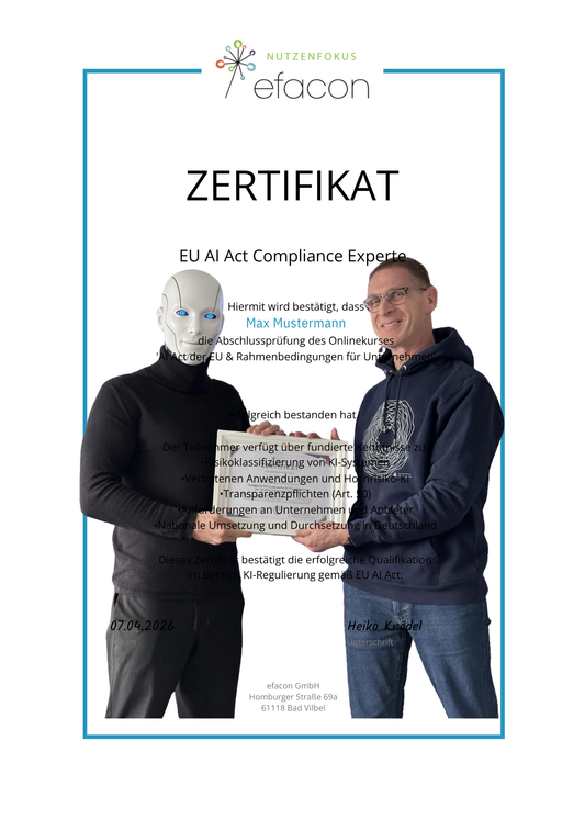 Master-Kurs: AI Act der EU (in der efacon-Akademie) inkl. ZERTIFIKAT